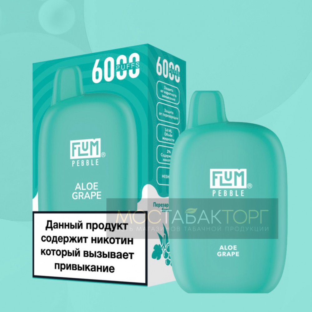 FLUM видыPebble FLUM вкусыАлоэ Виноград FLUM количество в блоке10 шт